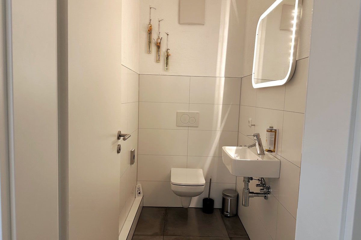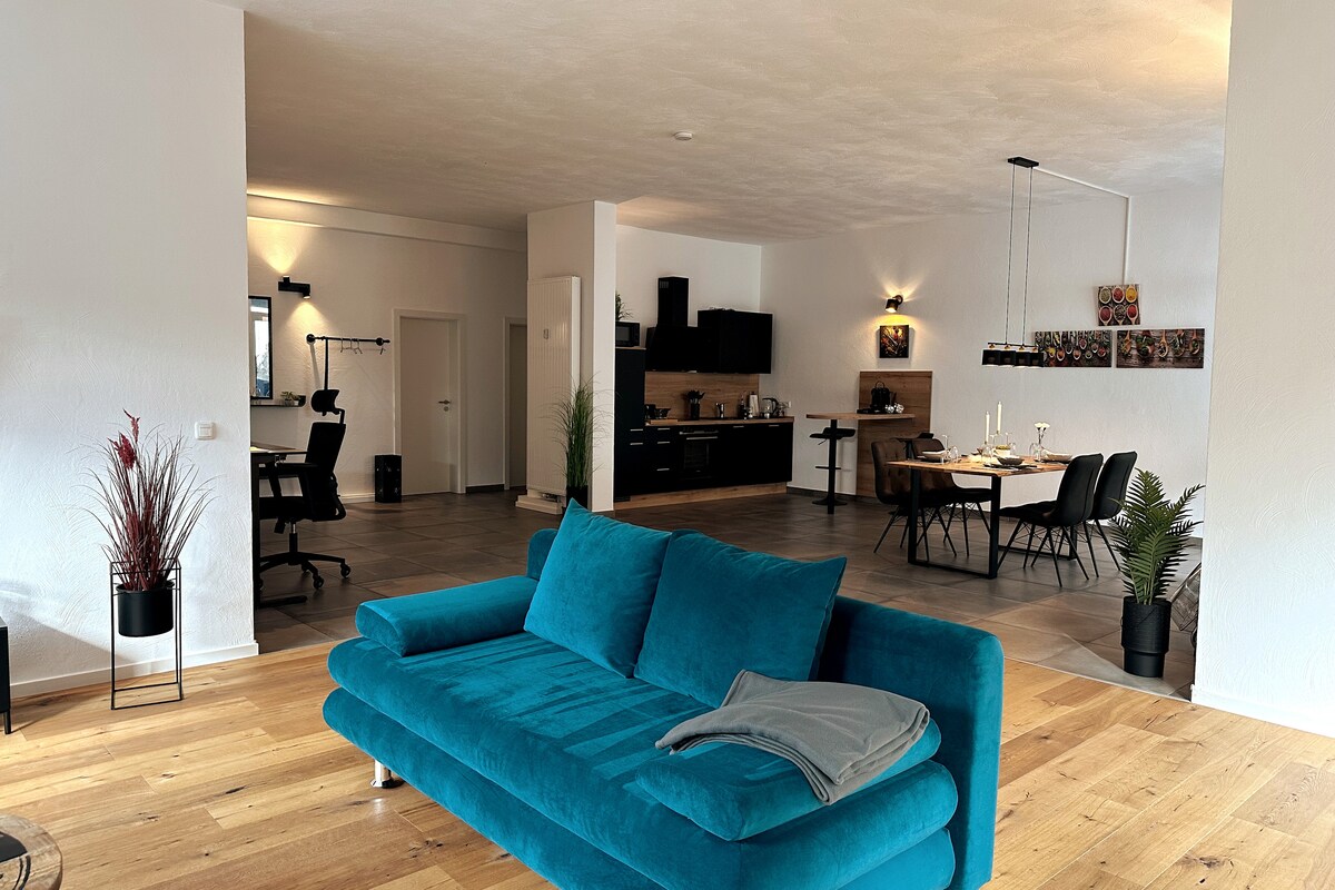 The spaceDas Apartment befindet sich im ersten Stock eines zweistöckigen Hauses mit drei Wohnungen. Du öffnest die Wohnungstüre mit dem Code und gelangst in das geräumige Apartment mit Loft-Charakter.