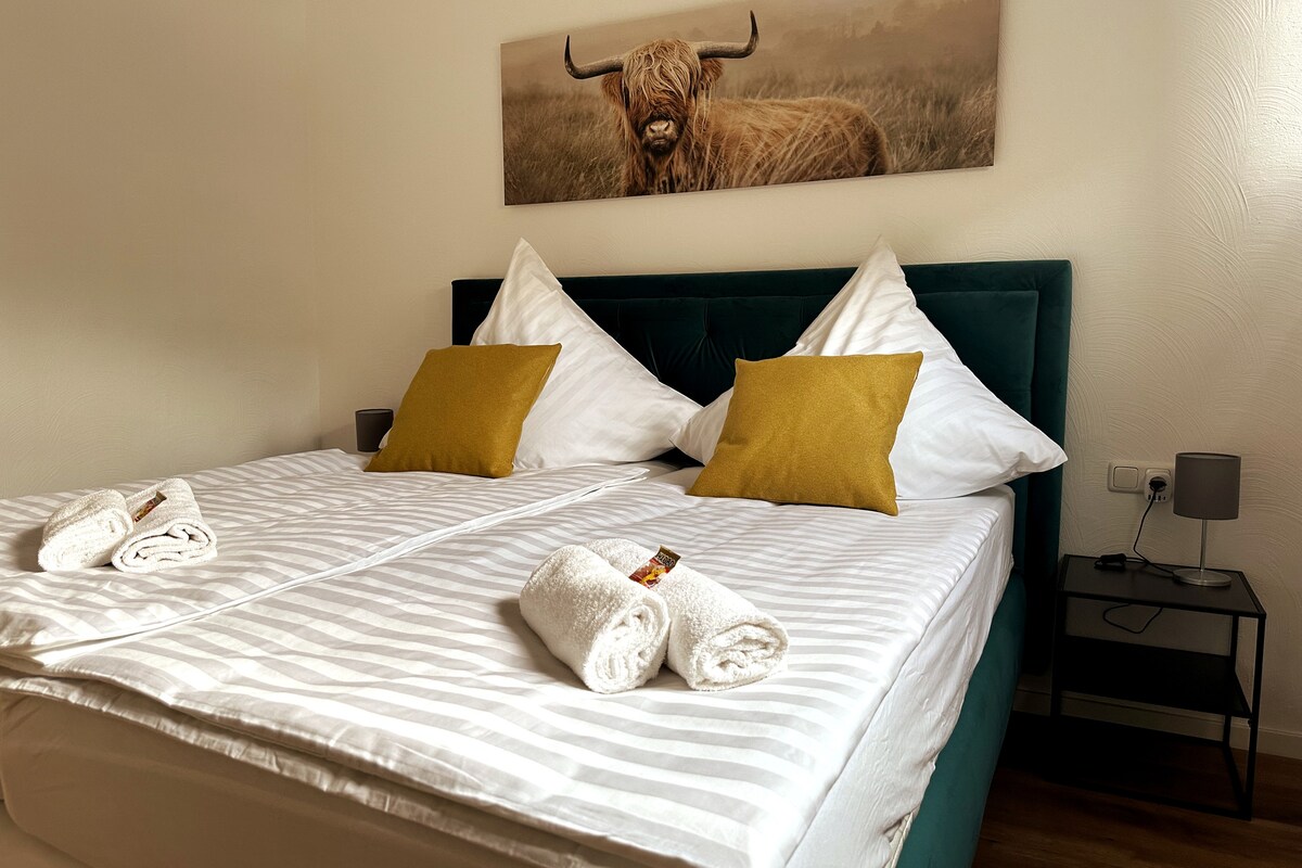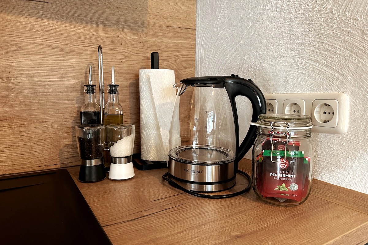 Die 110 qm erwarten Dich mit einer luxuriösen und gleichzeitig minimalistischen Designausstattung. Eine voll ausgestattete Küche in Schwarz matt mit allem, was Du zum Kochen benötigst. Für den morgendlichen Kaffee (Nespresso) ist genau so gesorgt, wie für den Nachmittagstee – alles natürlich inklusive.